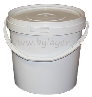 Balde de 12 litros, branco com asa e tampa inviolável colocável à pressão.