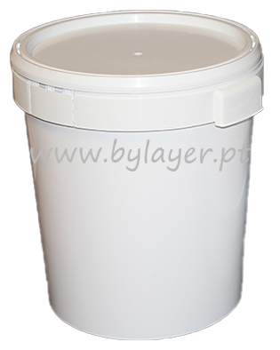 Balde de 32 litros, branco com pega e tampa inviolável colocável à pressão.