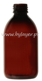 Frasco PET âmbar com capacidade de 250ml.
