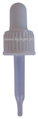 Tampa rosca inviolável raiada PP18 branca com pipeta conta gotas com tubo 65mm altura